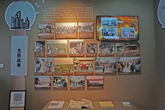 △ 展廳左側“光陰故事”單元,通過一組老照片,展示過去西北旺地區在農業生產、群眾生活、鄉村發展等各個方面的歷史變遷。