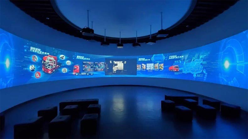 在270°環幕體驗區,東風商用車基于細分市場應用場景,精準識別客戶需求,通過“270°環幕投影技術”讓觀眾置身其中沉浸式體驗綠色智慧物流整體解決方案。東風商用車洞察18個細分行業下的場景應用需求,向客戶展示可靠的商品和服務,并通過客戶案例展示,讓到場客戶感知來自同行業伙伴的聲音。值得一提的是,該區域設置了東風天龍GX原車座椅,它可以多向調節并配有加熱通風功能,可以給客戶帶來舒適而輕松的體驗,也可以讓社會各界人士感知到新時期中國卡友的駕駛體驗。