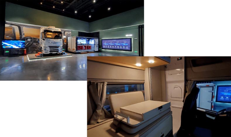 永遠了解客戶的需求,東風商用車洞察客戶痛點:駕駛室是司機工作的主要場所,更是客戶在長途運輸工作中“車輪上的家”。在這里展示的“生活座艙”,以現有商用車座艙為基礎,針對用戶“家”屬性延伸,進行了整體座艙的設計,提升座艙空間利用率,配備了電動躺椅功能、雙人床功能、隱藏式淋浴房、全車環繞氛圍燈帶等功能,為駕駛員打造安全舒適、更智能科技的駕乘體驗。