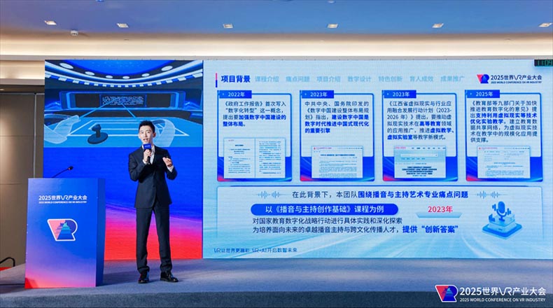 決賽設置“技術創新”與“教學應用”兩個賽道。各參賽團隊充分展示了AI、XR等前沿技術在教學實踐中的創新應用,將VR技術有機融入課堂教學與人才培養全過程。