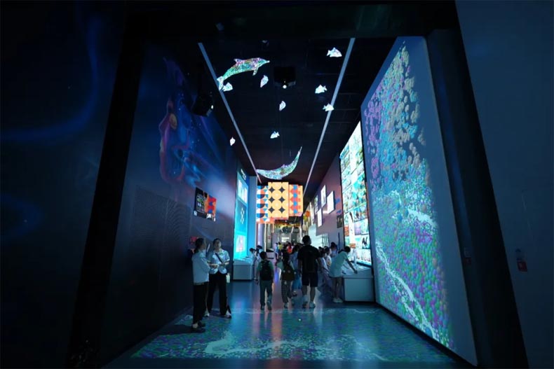 科視合作伙伴建業顯示與上海清映在深圳科學技術館多個展廳部署了逾 100 臺 Inspire 系列1DLP激光投影機,利用異形投影、沉浸式、互動投影等多種光影技術手段,為館內打造趣味科普場景,用光影重構科學認知。