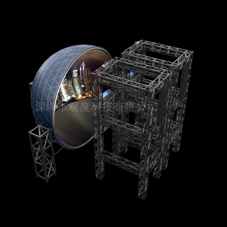 它是如何實現的呢?觀度飛行球幕影院是由骨架組成的半球形銀幕,直徑達到5-25米,觀眾在飛行球幕影院觀看電影時,整個畫面布滿在球體上,透射型的金屬銀幕,六聲道的立體聲效果,讓觀眾享受栩栩如生的萬千氣象。影院內的動感平臺,是集電器自動化控制、計算機動畫為一體的高科技系統工程。當您坐在平臺載體上,整個載體可上下升降,左右傾斜,前后俯仰,即能摸擬航天器去邀游太空,也可以摸擬潛水器,飽覽海底世界的奇特景象。隨著逼真的畫面和平臺載體的活動,讓人不由自主的進入角色,造成非常真實和驚險刺激的特殊感覺。
