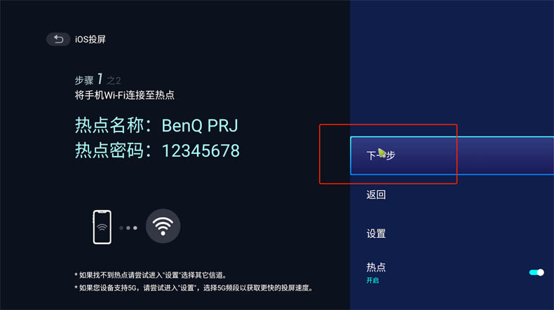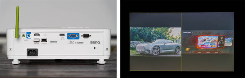 看更高標(biāo)準(zhǔn),明基E582內(nèi)置雙頻雙開WiFi,支持2.4G/5G頻段,并且優(yōu)化了無(wú)線投屏思路,投影儀自身可連接外部熱點(diǎn)上網(wǎng),而與設(shè)備之間的無(wú)線投屏則通過投影儀的一根綠色小天線發(fā)射熱點(diǎn)進(jìn)行直連,這樣一來(lái),投屏設(shè)備的網(wǎng)絡(luò)狀態(tài)與投影儀一致,不會(huì)出現(xiàn)因外部網(wǎng)絡(luò)卡頓而投屏延遲、因直連投影儀熱點(diǎn)而無(wú)法上網(wǎng)的情況。