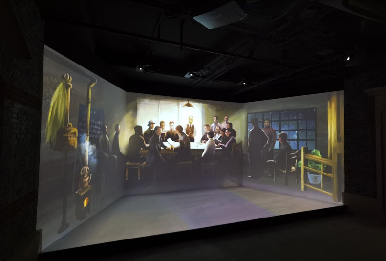 與此同時,紀(jì)念館進(jìn)一步融入多媒體互動技術(shù),實現(xiàn)“智慧”場館,如:AR增強(qiáng)現(xiàn)實技術(shù)、多媒體投影動態(tài)展示、圖像識別、一鍵切換、雷達(dá)互動捕捉等技術(shù),更好地提升觀展互動性、參與性、趣味性。展館采用10臺明基激光短焦工程投影機(jī),打造貼合異形墻面的沉浸式影像,對中共四大的歷史娓娓道來,投影設(shè)備從不同角度靈活運行,融合成渾然一體的超大幅畫面。