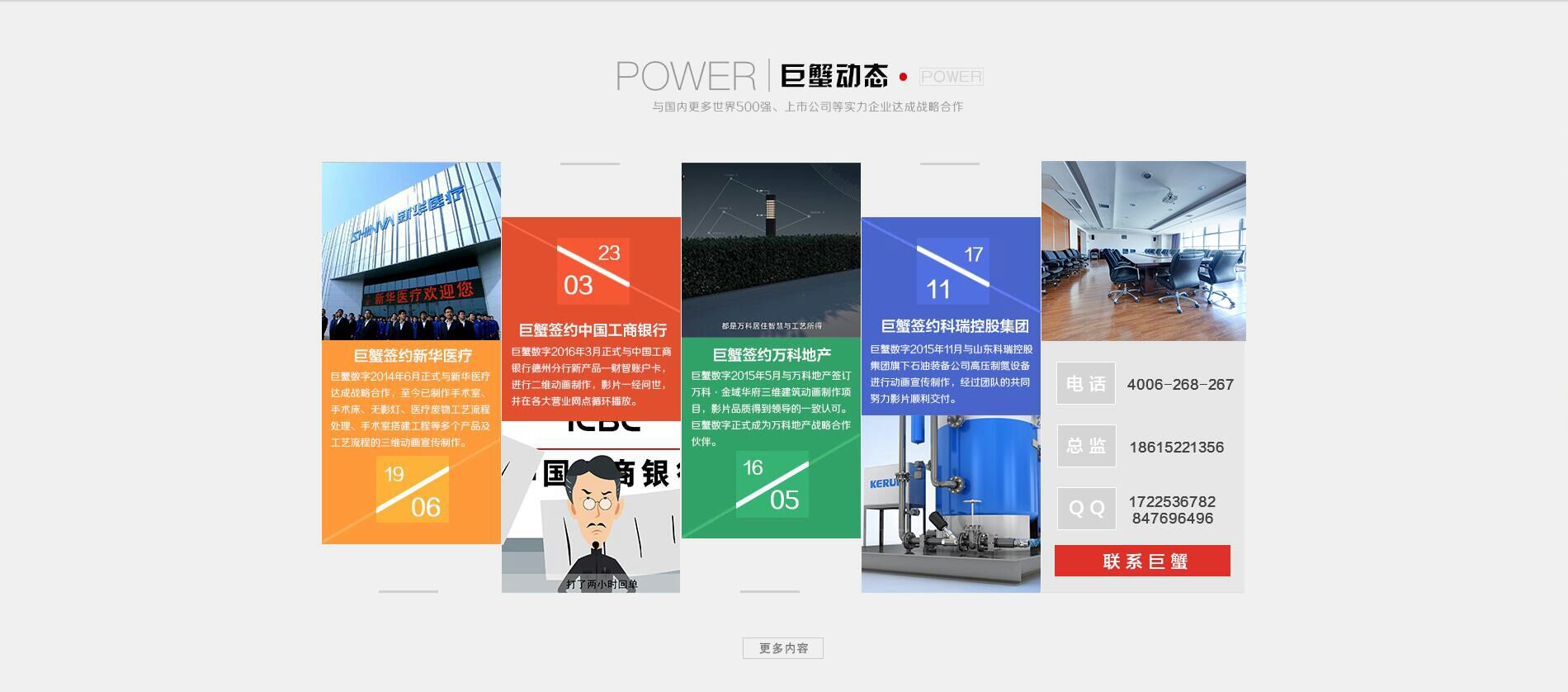 巨蟹數字憑借多年經驗的資深團隊,先進的三維技術,非凡的視覺創意,優質的客戶服務以及完整的產品線,巨蟹數字迅速成為國內領先的視覺技術及服務企業。