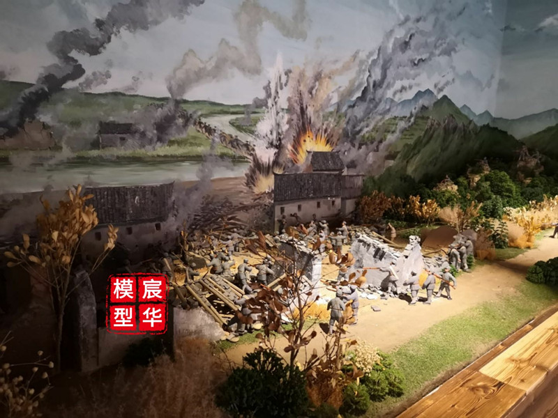 根據陳列展示內容的重點及亮點,綜合采用場景復原、雕塑、油畫、電子沙盤幻影成像等各種現代展示技術和藝術手法,在穩重大氣的基調中提高展館的觀賞性、藝術性,我們將地形環境山水、建筑等地方特色元素融入到整個陳列展示之中,充分體現展覽的地域特征。
