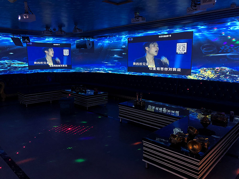 房間里的畫面呈現(xiàn)一種獨特的3D效果,立體性強(qiáng)。將KTV包房中一切可以被利用的空間反射體,通過尖端的高科技視頻技術(shù)創(chuàng)造出渾然一體的視覺畫面,讓整個KTV包房充滿沉浸式效果,擺脫以往千篇一律的沉悶感。讓演唱者在演唱的同時可以感受環(huán)境帶來的變化,完全沉浸其中。