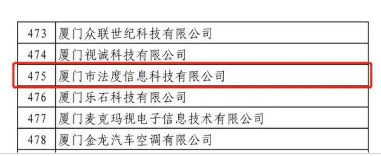 這是繼法度信息在2019年榮獲的“廈門市科技小巨人企業(yè)”及2020年獲得的“廈門市科技小巨人領(lǐng)軍企業(yè)”的又一殊榮!