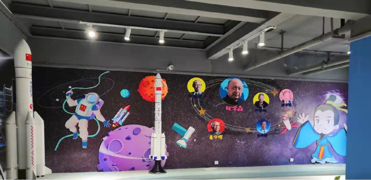 1.墻面互動(虛實結(jié)合):走進(jìn)戶外模型展示區(qū),這里有我們熟悉的“太陽系家族”,一眼就能看到墻面上的行星公轉(zhuǎn)自轉(zhuǎn)體系模型以及墻面上璀璨的銀河、耀眼的星星閃爍。當(dāng)參觀者點(diǎn)擊某顆行星,墻面就會彈出相應(yīng)的文字、圖片、視頻介紹。