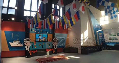 | 展廳中心融合卡通元素的海事主題造景,生動的闡明主題。 |